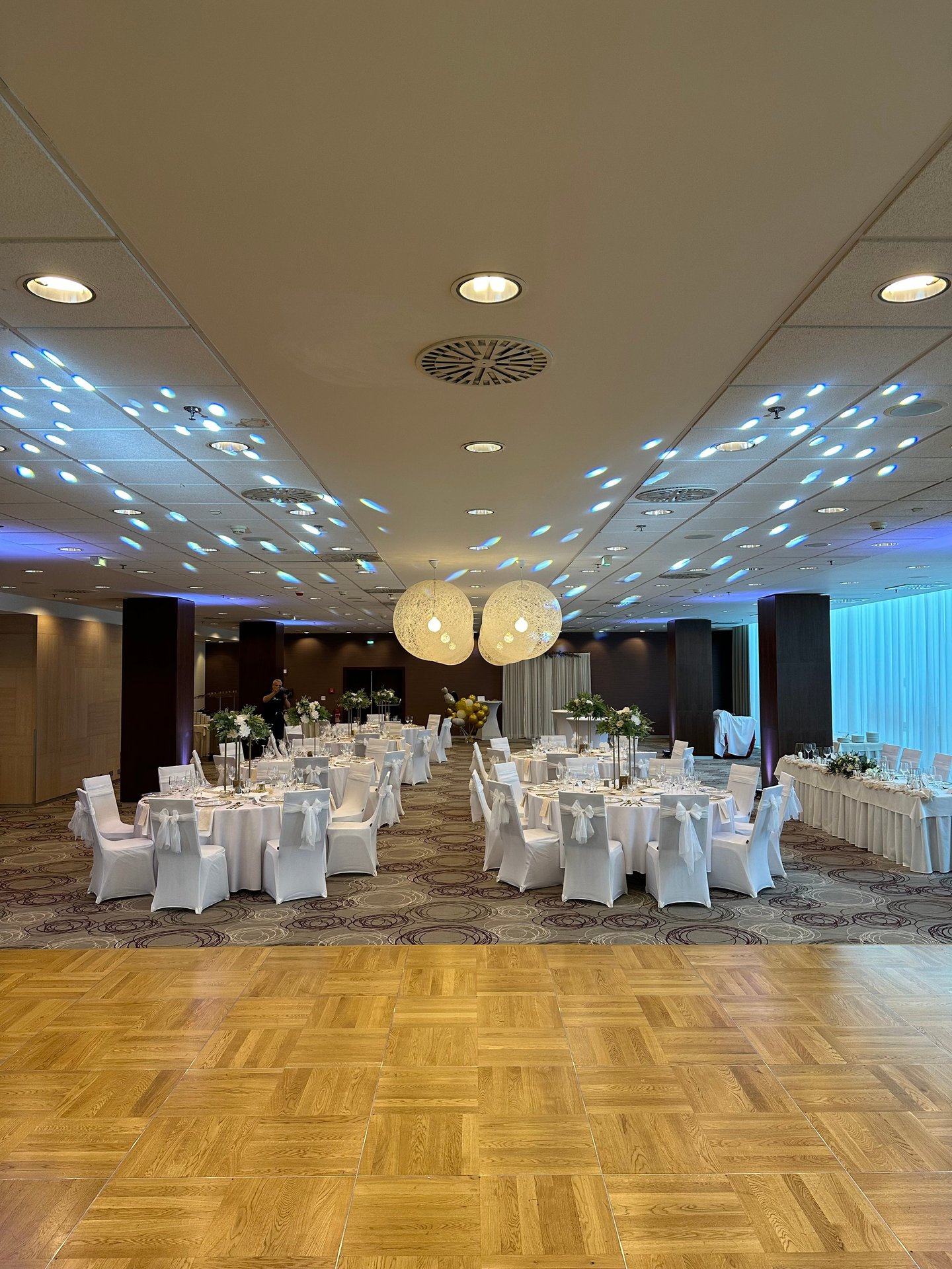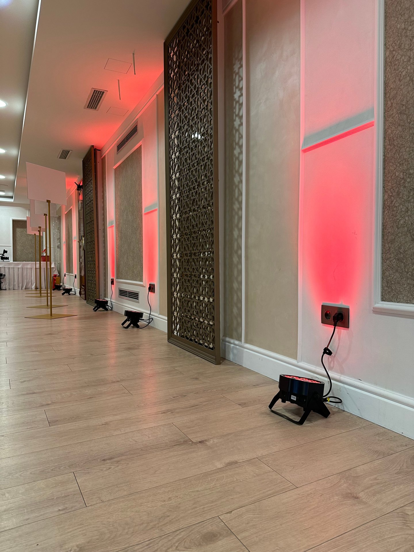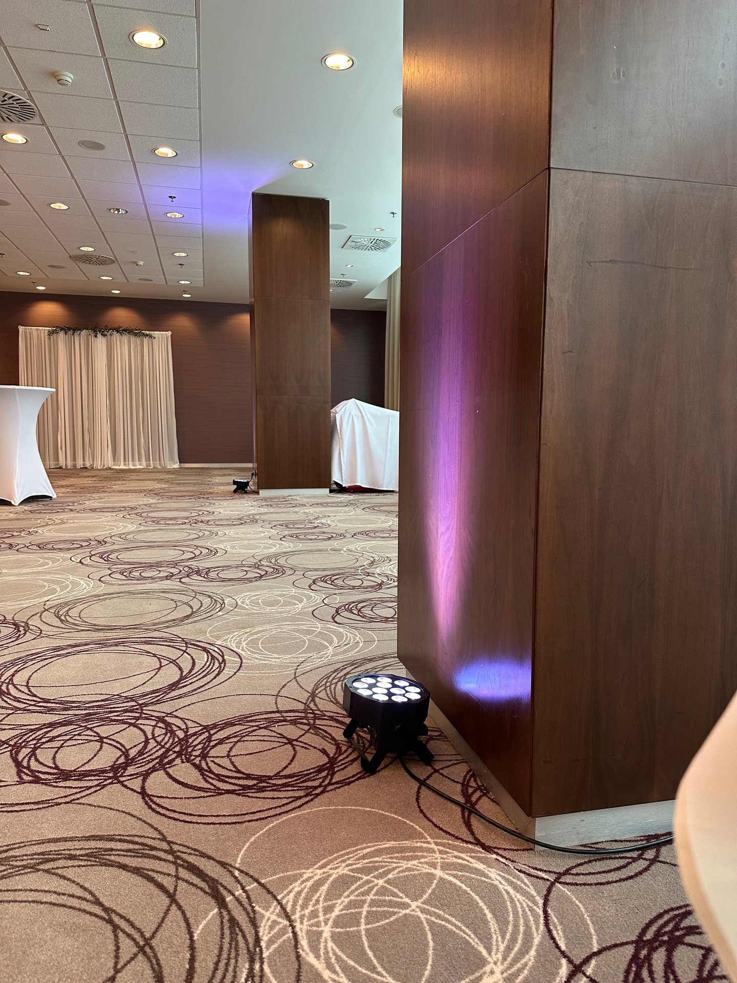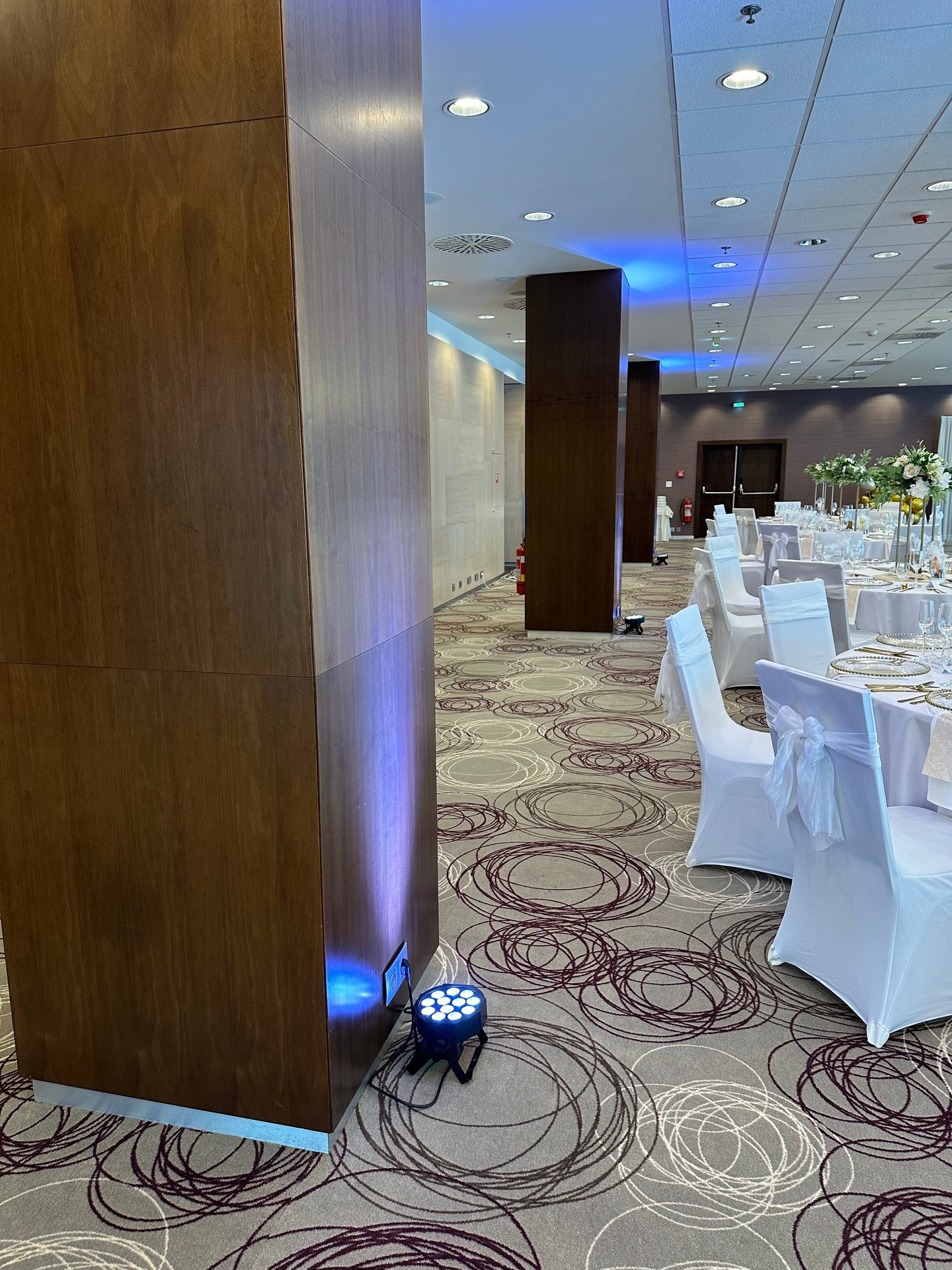 Nasvietenie miestnosti je skvelý spôsob, ako zvýrazniť krásu prostredia a vytvoriť jedinečnú atmosféru. Na týchto fotografiách môžete vidiet, ako profesionálne osvetlenie prispieva k nezabudnuteľnému vizuálnemu zážitku na každej udalosti.