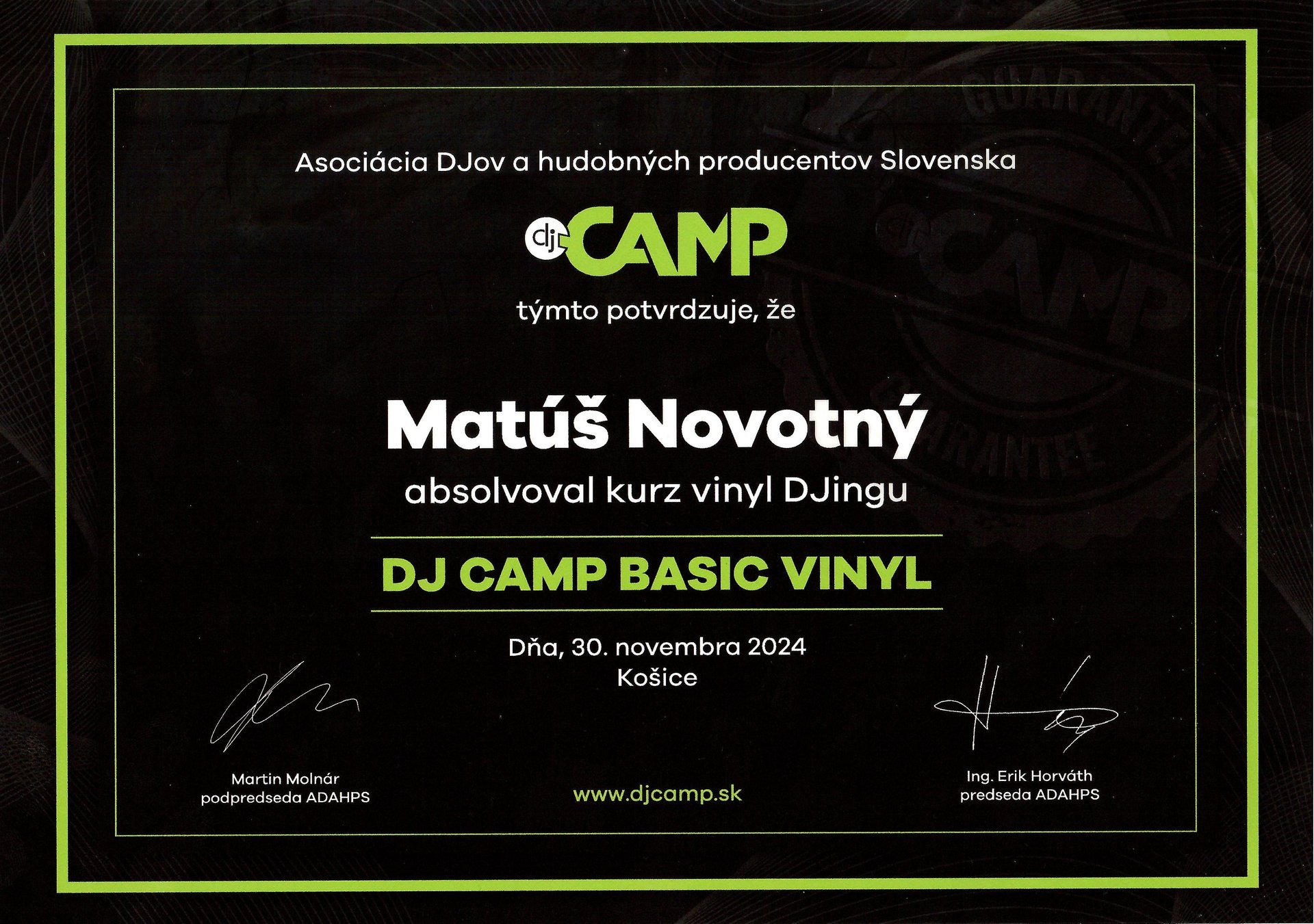 Certifikát potvrdzuje moju odbornú prípravu a schopnosť profesionálne ovládať DJ techniku, čo zabezpečuje kvalitu a profesionalitu na každej udalosti.